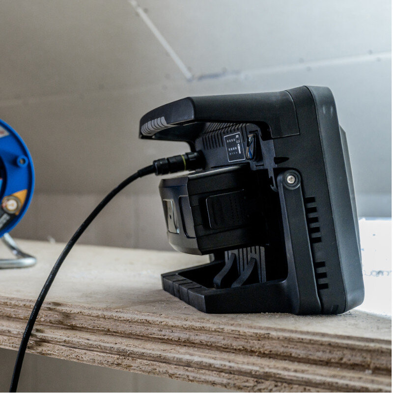 brennenstuhl® Multi Battery 18V Sistemi ile uyumlu, 100W gücünde, son derece sağlam ve parlak Profesyonel Multi Battery LED akülü çalışma lambası, Bosch Professional, Dewalt, Einhell, Fein, Festool, Flex, Hikoki, Makita, Metabo CAS, Milwaukee ve Würth dahil olmak üzere on bir farklı elektrikli el aleti üreticisinin 18V aküleriyle (çeşitli Ah sınıfları) sorunsuz bir şekilde çalışır. Kullandığınız akü sistemi ne olursa olsun, arayüz teknolojisi sayesinde maksimum esneklik elde edersiniz ve dilediğiniz akü sistemine kolayca geçiş yapabilirsiniz. Uyumlu adaptör, tek bir hareketle arayüze takılabilir. Brennenstuhl, AMPShare – Bosch Professional tarafından desteklenen bir parçasıdır. AMPShare akü ittifakı, brennenstuhl® çalışma lambalarının Bosch Professional’ın 18V şarj edilebilir aküleriyle kullanılmasını sağlar. 12500lm ışık akısına sahip LED şantiye lambası, parlamayan ve darbeye dayanıklı yapısıyla geniş alanlarda optimum aydınlatma sağlar. Darbeye dayanıklı spot lamba, dikey, yatay veya tripod üzerine monte edilerek esnek bir şekilde kullanılabilir. Hibrit teknoloji sayesinde, yüksek parlaklığa sahip bu lamba hem akü hem de şebeke elektriği ile çalıştırılabilir. Elektrik kesintisi durumunda, LED spot lamba otomatik olarak şebekeden aküye geçerek güvenliğinizi sağlar. Ayrıca, kullanılan pillerin kalan enerjisini gösteren bir pil durumu göstergesi (piller harici olarak şarj edilmelidir) ve elektrikli el aleti pilleri için bir koruma sistemi bulunur. Bu sistem, pilleri derin deşarjdan ve aşırı ısınmadan (yüksek yük akımlarından kaynaklanan) korur.