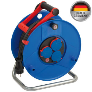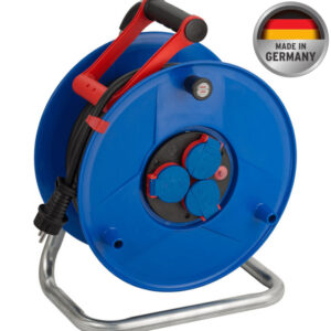 Brennenstuhl’un mavi renginde 44m kablo uzunluğuna sahip Garant IP25 ticari/şantiye kablo tamburu, tüm alanlarda kalitesi ve güvenliği ile etkileyicidir. Kablo tamburu, şantiyelerde ve dış mekanlarda kullanım için idealdir
